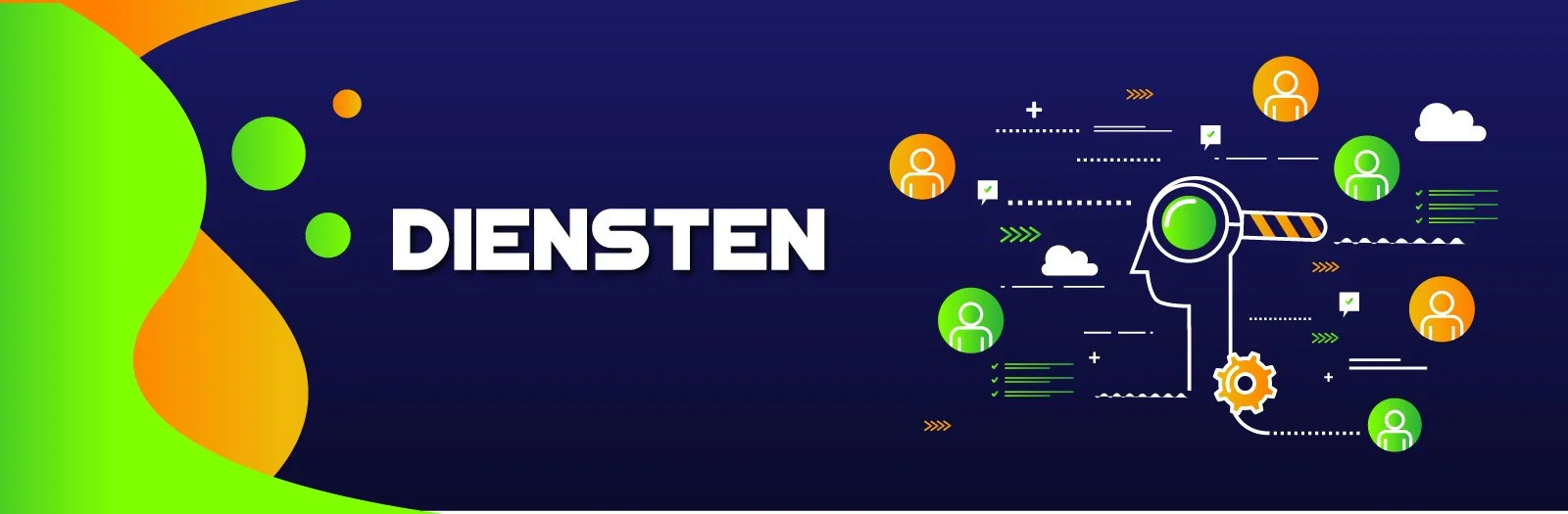 Illustratie van mensen en een gear, symboliserend teamwork en technologie